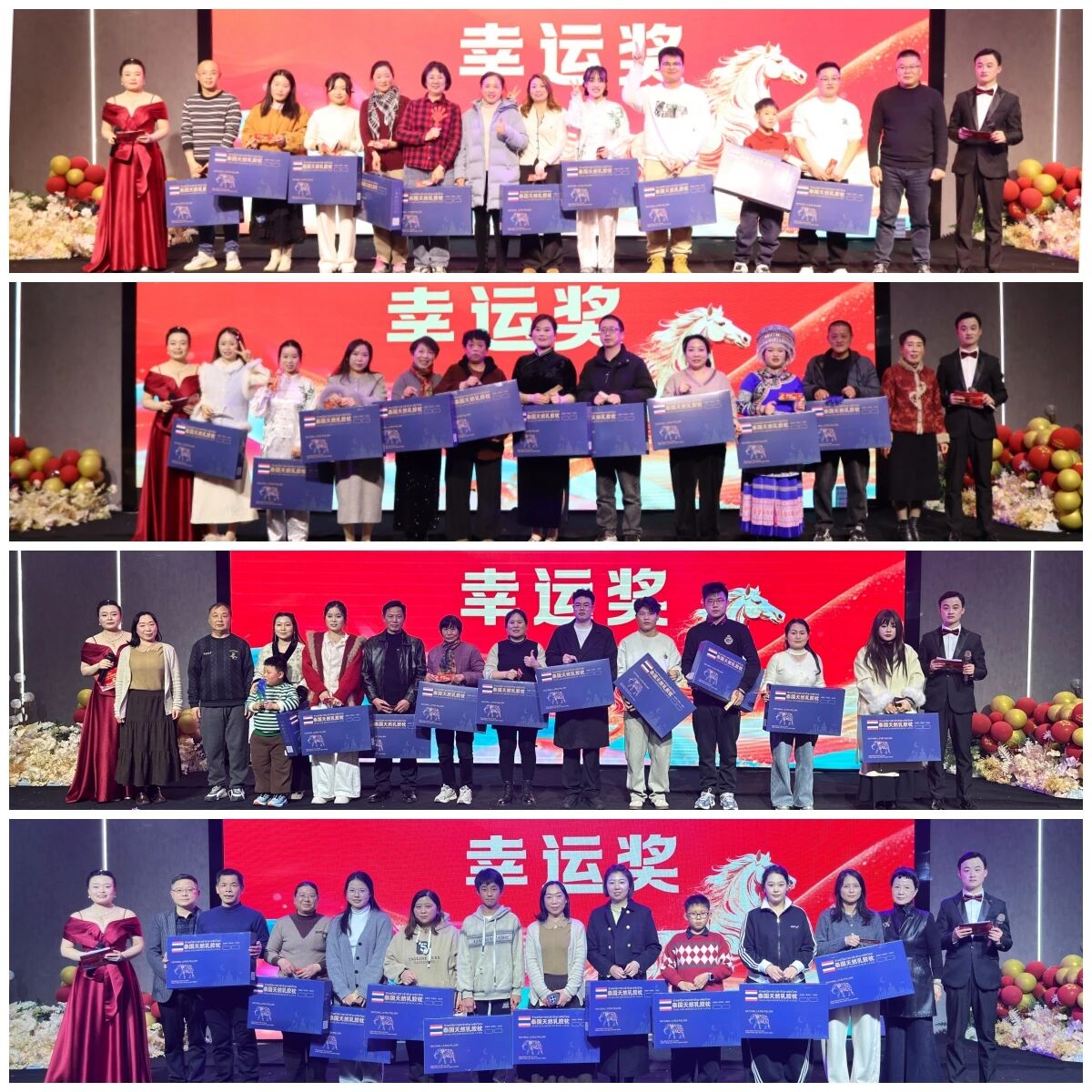 除了精彩的节目,晚宴现场还设置了多轮抽奖环节,惊喜不断、好运连连,每一份奖品都承载着医院对全体员工的关怀与祝福,让这个夜晚充满了欢声笑语与温暖感动。