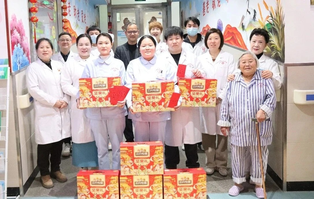 慰问现场,暖意融融。林总、陶院长等院领导一行,亲手将承载着医院关爱与新春期许的红包和礼包,一一送到每一位员工手中,一句句亲切的问候、一声声暖心的祝福,瞬间驱散了冬日的寒意,也让每一位员工的心中都充满了暖意。